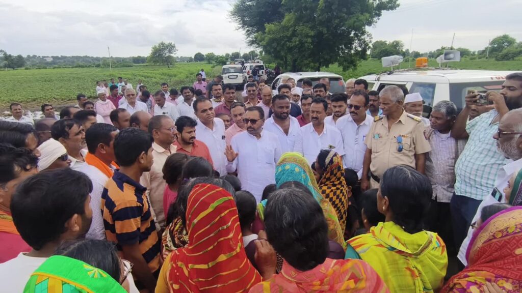शेतकऱ्यांच्या बांधावर जावुन केंद्रीयमंत्री प्रतापराव जाधव यांनी केली अतिवृष्टीमुळे नुकसान झालेल्या शेत जमिनीची पाहणी..! पंचनामाचे चावडी वाचन करून घेण्याचे शेतकऱ्यांना केले आवाहन…!!