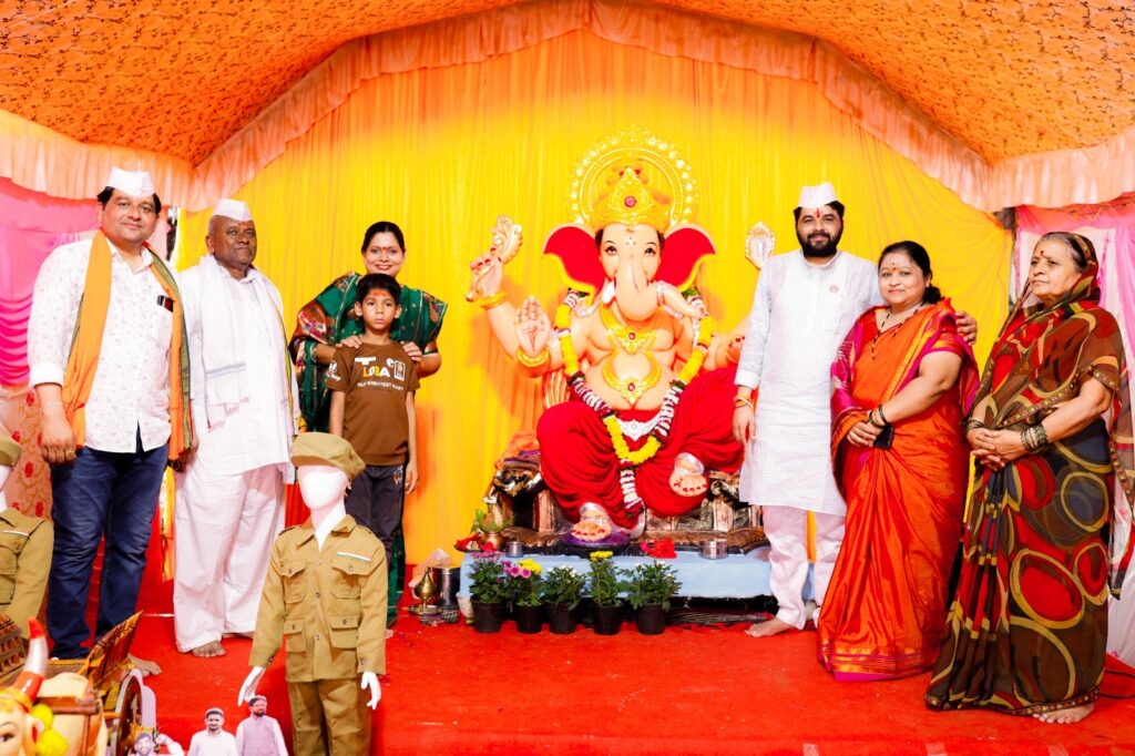 बुलढाणा शहरातील चिखली रोडवरील महावितरण कार्यालयापासून क्रांतिकारी राजाचा भव्य आगमन सोहळा सुरू झाला. रविकांत तुपकर यांच्यासह अनेक शेतकरी कष्टकरी या सोहळ्यात सहभागी झाले. मिरवणूक क्रांतिकारी हेल्पलाइन सेंटर जवळ आल्यानंतर रविकांत तुपकर यांची दत्तक कन्या श्रेया हिच्या हस्ते श्री. गणरायांचे विधिवत पूजन करून स्थापना करण्यात आली.