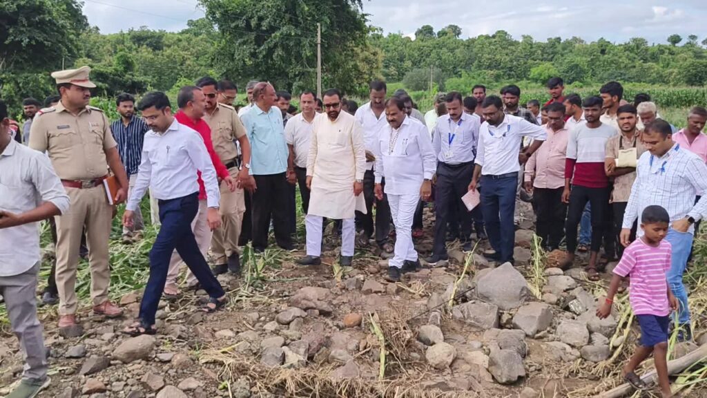शेतकऱ्यांच्या बांधावर जावुन केंद्रीयमंत्री प्रतापराव जाधव यांनी केली अतिवृष्टीमुळे नुकसान झालेल्या शेत जमिनीची पाहणी..! पंचनामाचे चावडी वाचन करून घेण्याचे शेतकऱ्यांना केले आवाहन…!!